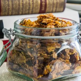 - Haferflocken, Cornflakes, Kerne, Samen und Gewürze vermischen.